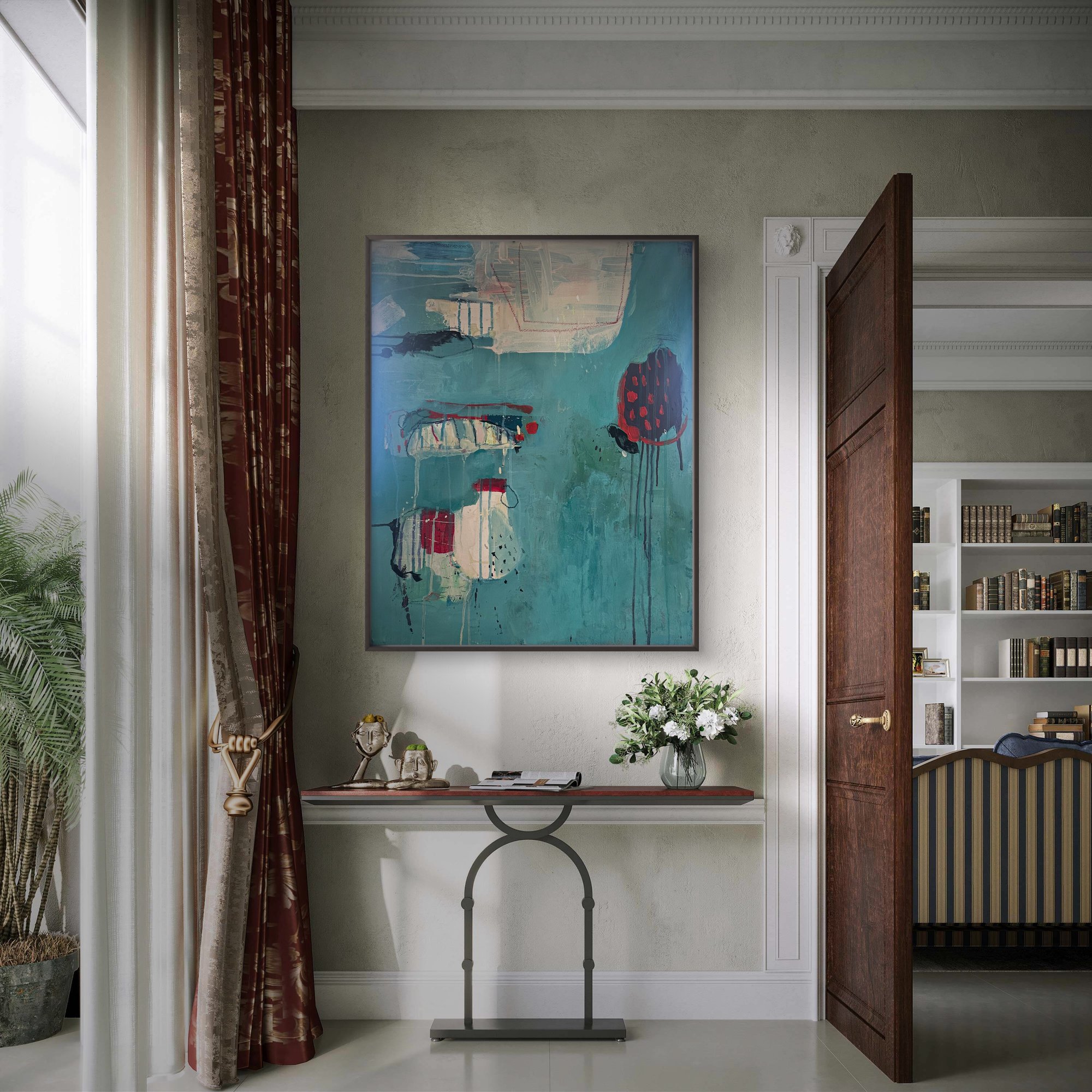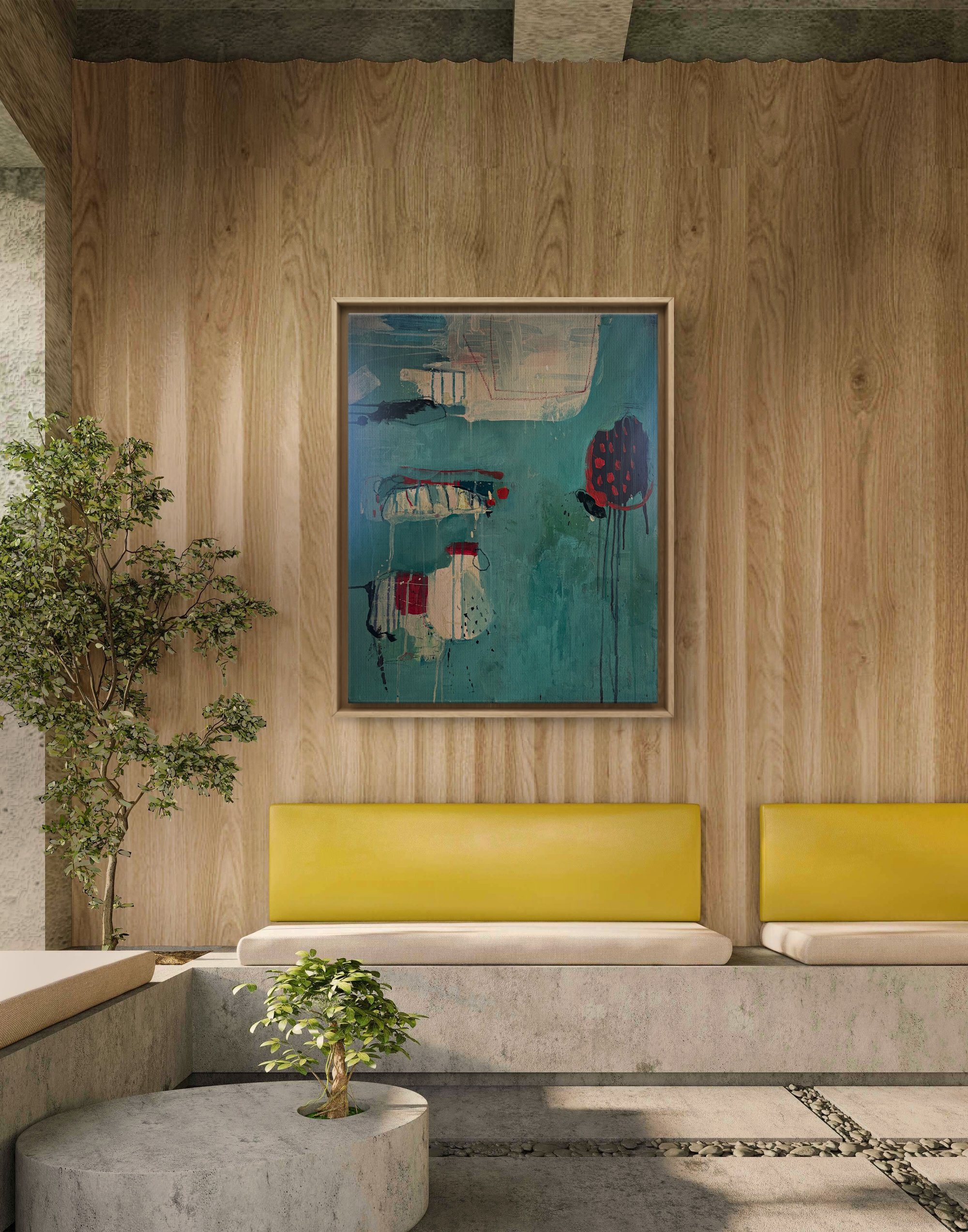 acrylic and paper on canvas